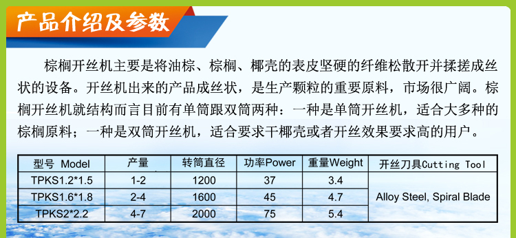棕櫚/椰殼開絲機